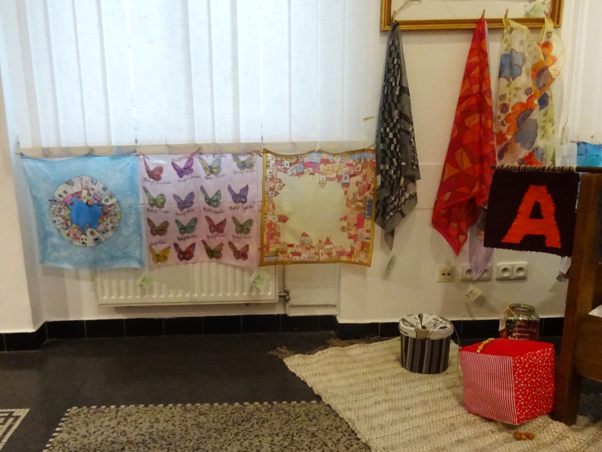 Na výstavě jsou k vidění výrobky z keramiky, tkané koberce, obrazy, loutky a dekorace z přírodnin, malba na hedvábí, vyšívané ubrusy, polštáře aj.