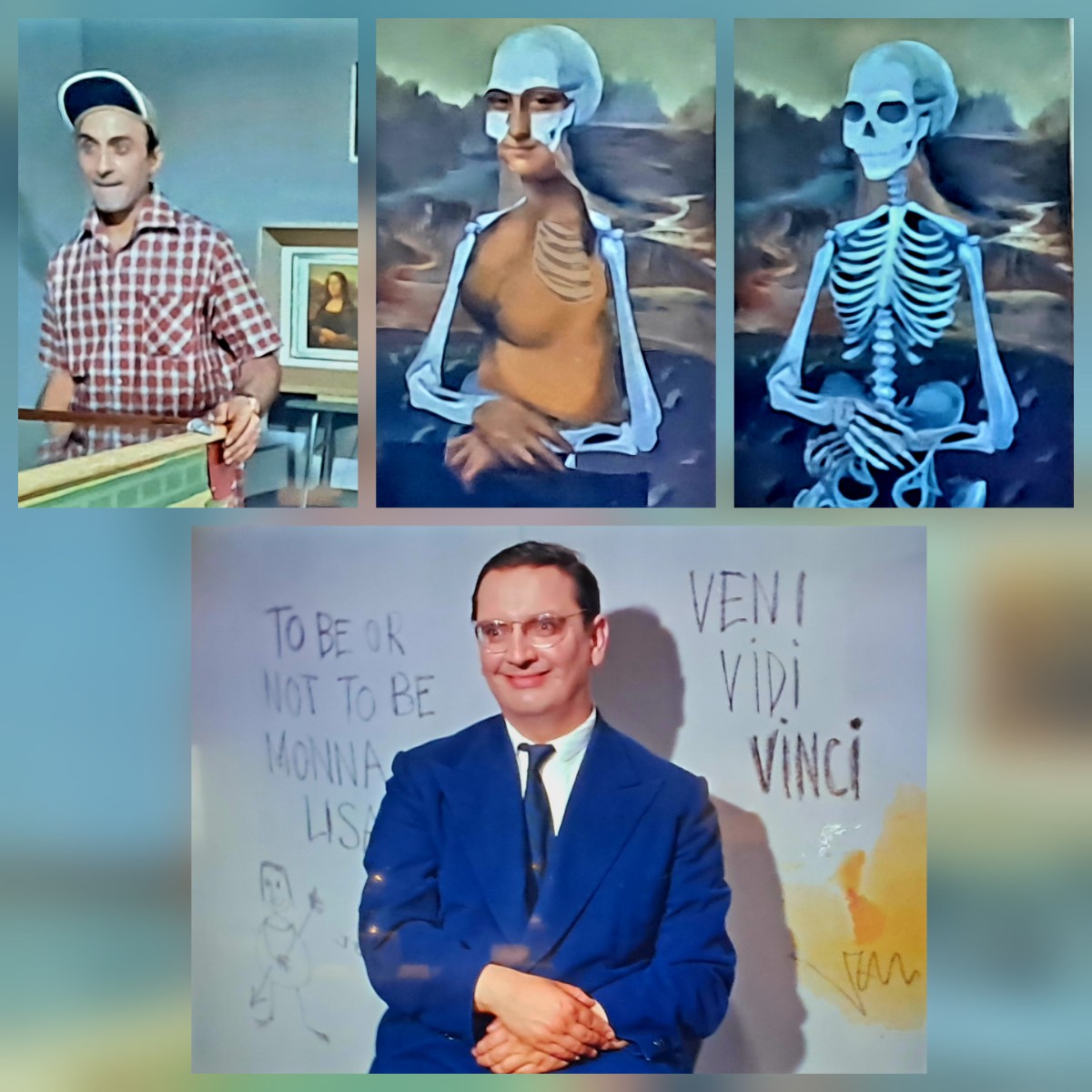 Gruel si vzal na mušku jeden z nejslavnějších obrazů – Leonardovu Monu Lisu. Nejprve ji ukazuje tak, jak ji známe, ale pak ji pod rukama hráče na automatu začíná proměňovat. Postupně se objevují svaly a jednotlivé kosti, až se v kostru změní celé tělo, poté Mona Lisa z obrazu mizí docela a zůstává jen prázdná krajina. Film uzavírá záběr na muže sedícího jako Mona Lisa s rukama složenýma v klíně a za ním se objevují ironické nápisy „To be or not to be Monna Lisa“ a „Veni, vidi, Vinci“, které si dělají legraci z výjimečného postavení obrazu.
