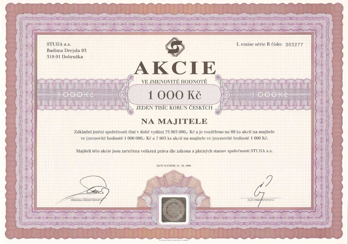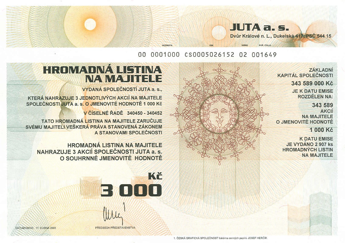 15. 1. 2026Nejčastějšími druhy listinných cenných papírů jsou akcie (představují podíl akcionáře na akciové společnosti), a to na jméno (konkrétního akcionáře, který je na ní napsán) nebo na majitele (vlastníkem akcie je ten, kdo cenný papír předloží), a dále dluhopisy (cenný papír, s nímž je spojeno právo požadovat splacení dlužné částky, tzv. jistiny, a výnosu, resp. úroků).