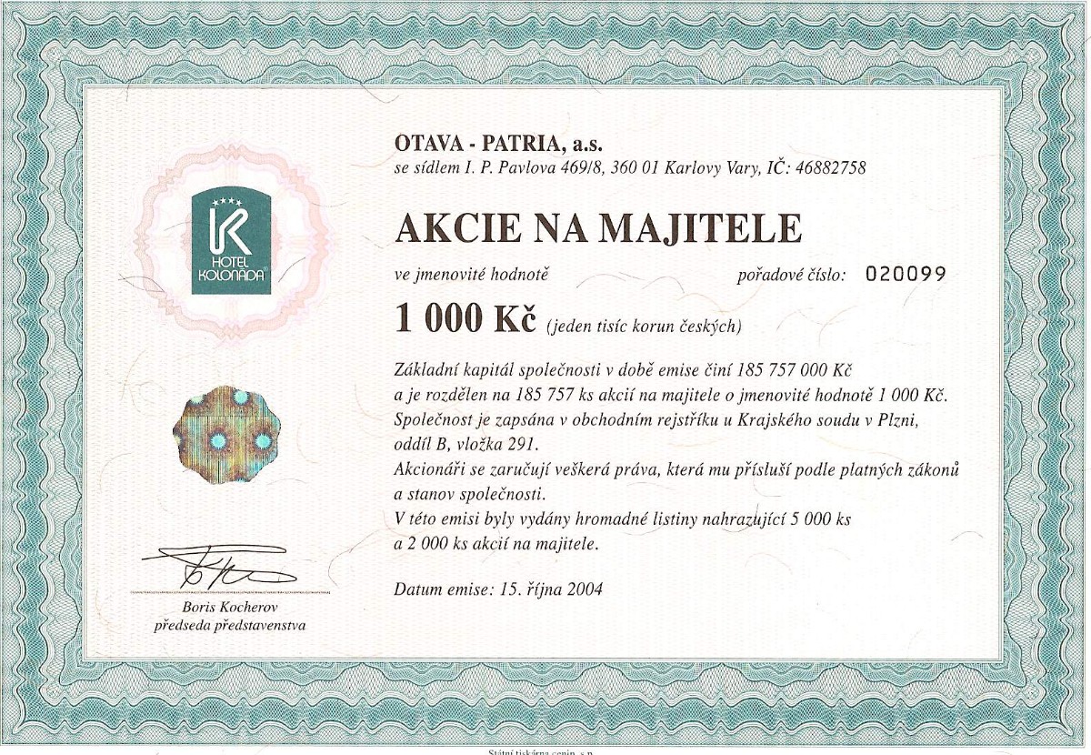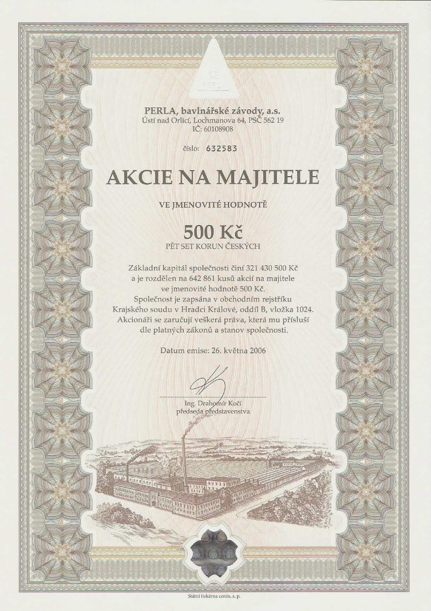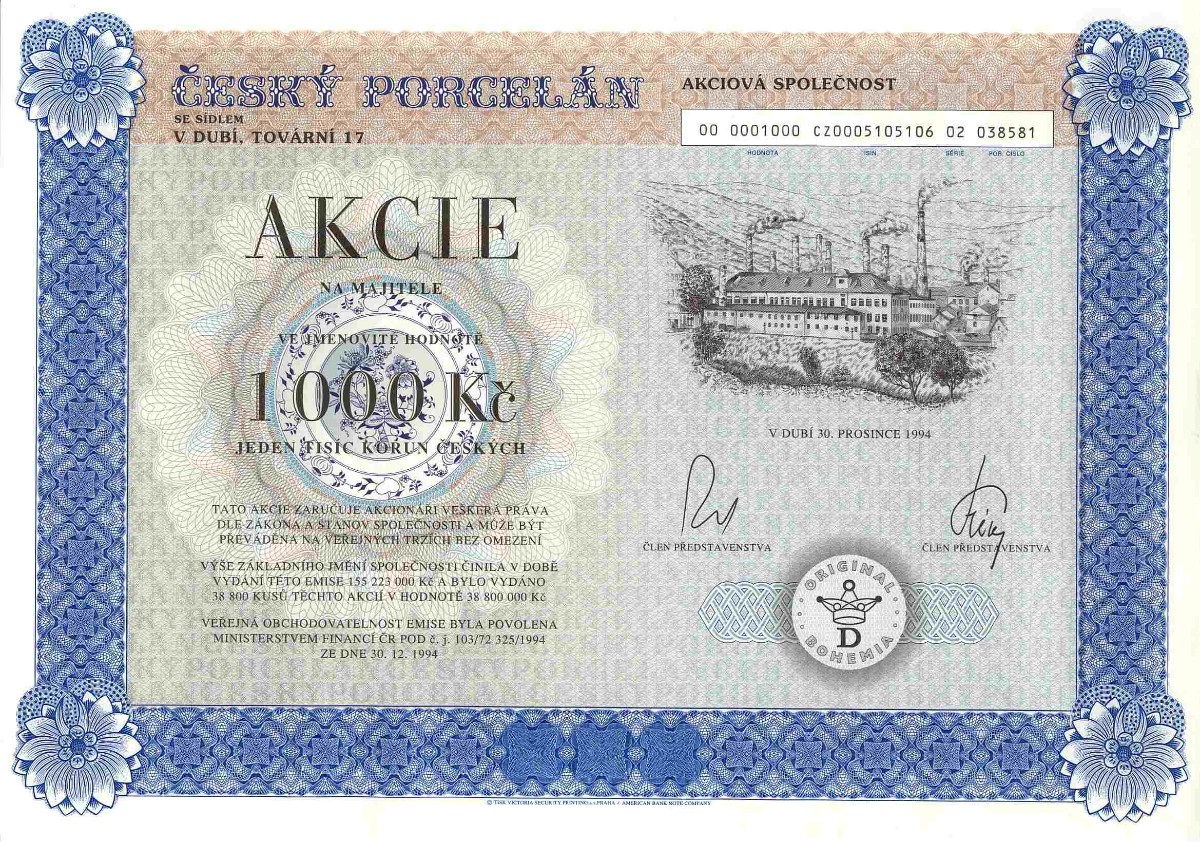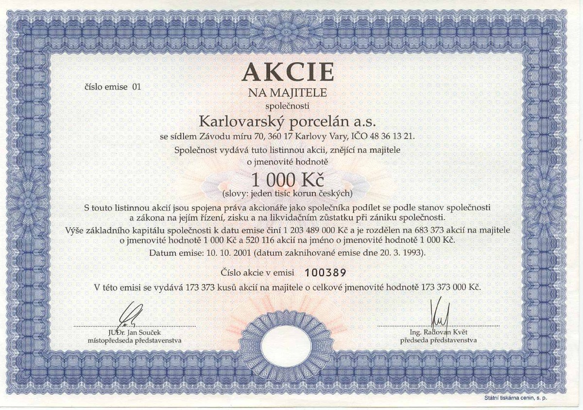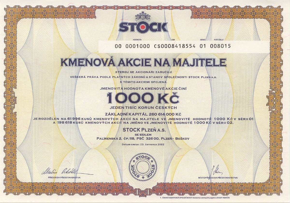 Několik ukázek ze sbírky je vyobrazeno za článkem. Na prvních dvou jsou akcie, které existovaly i za socialismu (Centrotex a Československá obchodní banka). Další už jsou akcie vydané po roce 1990. Naše generace určitě zavzpomíná na banky (Agrobanka, Banka Bohemia, Pragobanka, Moravia banka, Ekoagrobanka, COOP banka, Interbanka) a pojišťovny (Hasičská vzájemná pojišťovna) nebo na textilní a bavlnářské společnosti (Jitex, Juta, Krajka, Stuha, Triola, Vlnap, Perla). Akciemi lze však dokumentovat též lihovary a pivovary (Starorežná, Rudolf Jelínek, Stock Plzeň, Pivovar Svijany, Pivovar Rohozec, Primátor, Starobrno, Pardubický pivovar) i minerálku Mattoni (Karlovarské minerální vody), lázeňská zřízení (Balnea, Lázně Teplice v Čechách, Lázně Františkovy lázně), hotely (karlovarské Bristol, Otava-Patria či Grandhotel Pupp, pražské Hotel Jalta či Interhotel Olympik), cestovní kanceláře (Čedok), české sklo a porcelán (Sklárny Kavalier, Sklo Bohemia, Preciosa Lustry, Bižuterie, Český porcelán, Karlovarský porcelán), ale též sportovní kluby (fotbalové AC Sparta Praha či SK Slavia Praha, FC Baník Ostrava). Ukázky ještě doplňuji několika nejznámějšími českými značkami – Avia, Škoda, Sellier & Bellot, Spofa, Léčiva, Omnipol, Třinecké železárny, Xaverov, Botas, ČZ Strakonice, Dermacol, Jemča (čaje), Vulkan (preservativy). A na závěr dvě zajímavosti – akcie Casino a stále platná akcie Harvardský průmyslový holding s připomínkou Viktora Koženého a jeho „desetinásobku“.