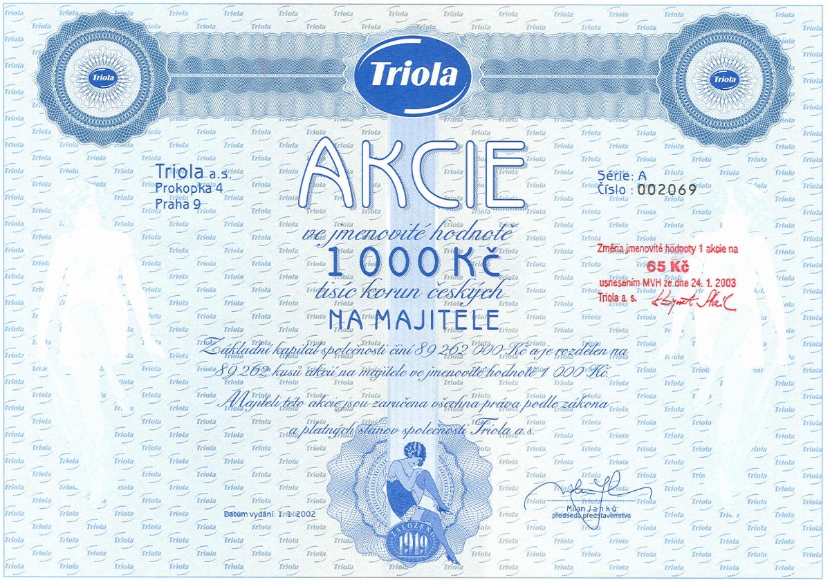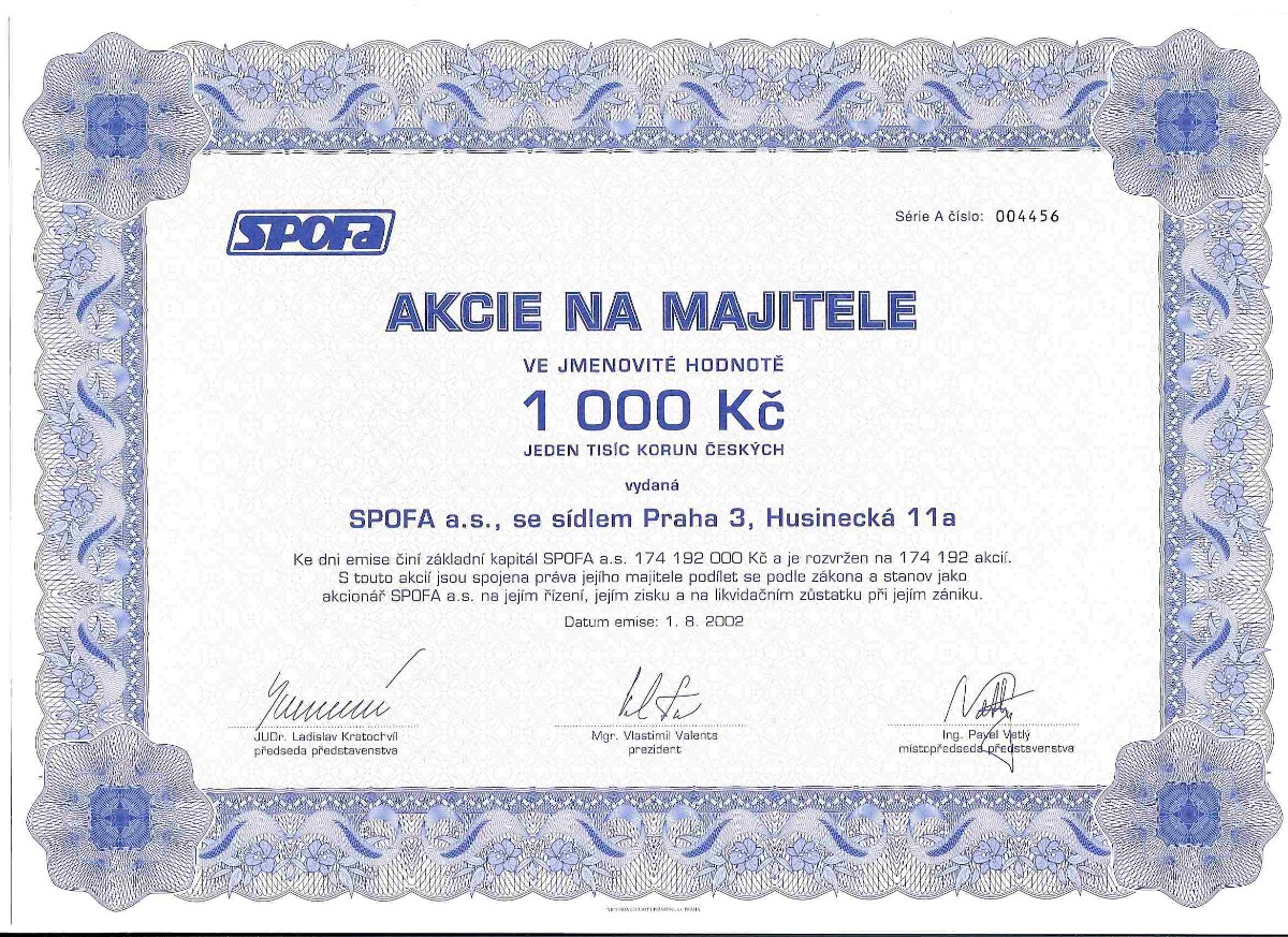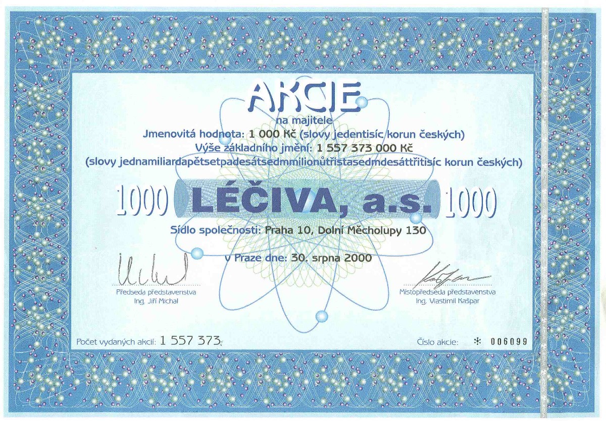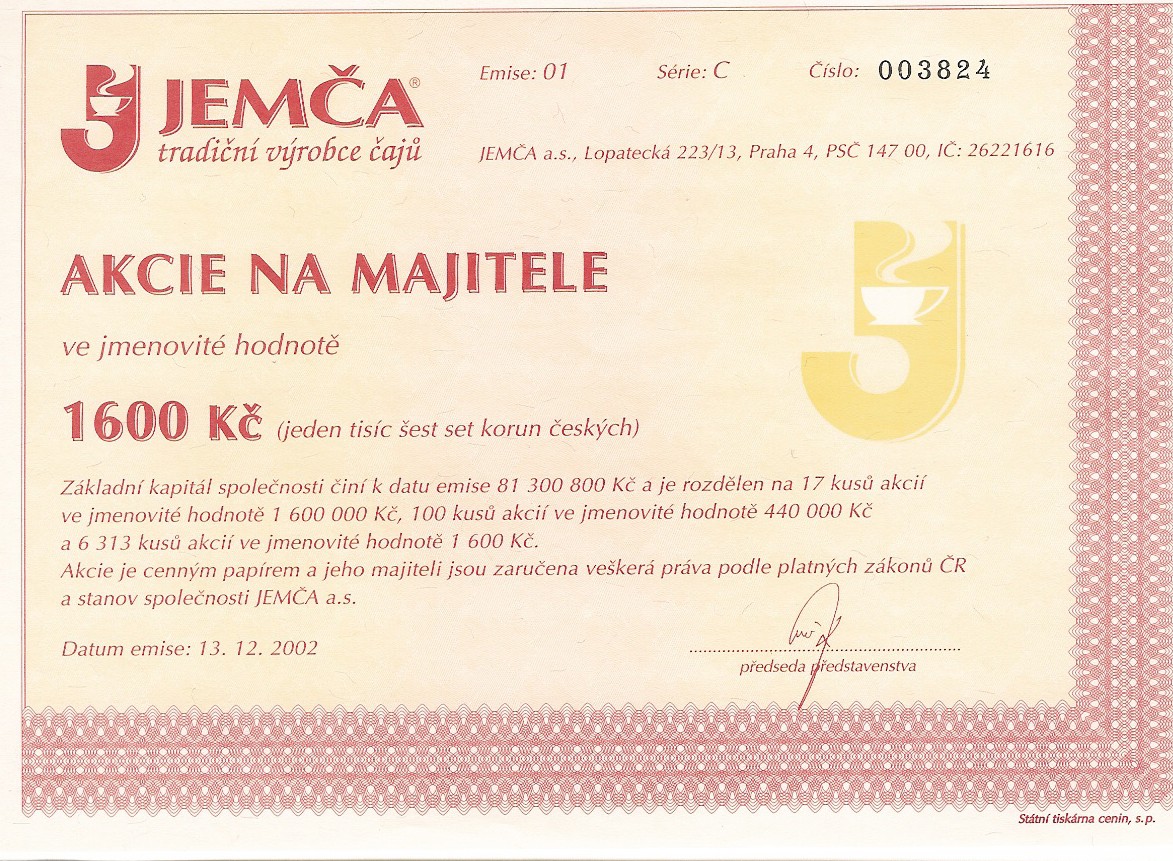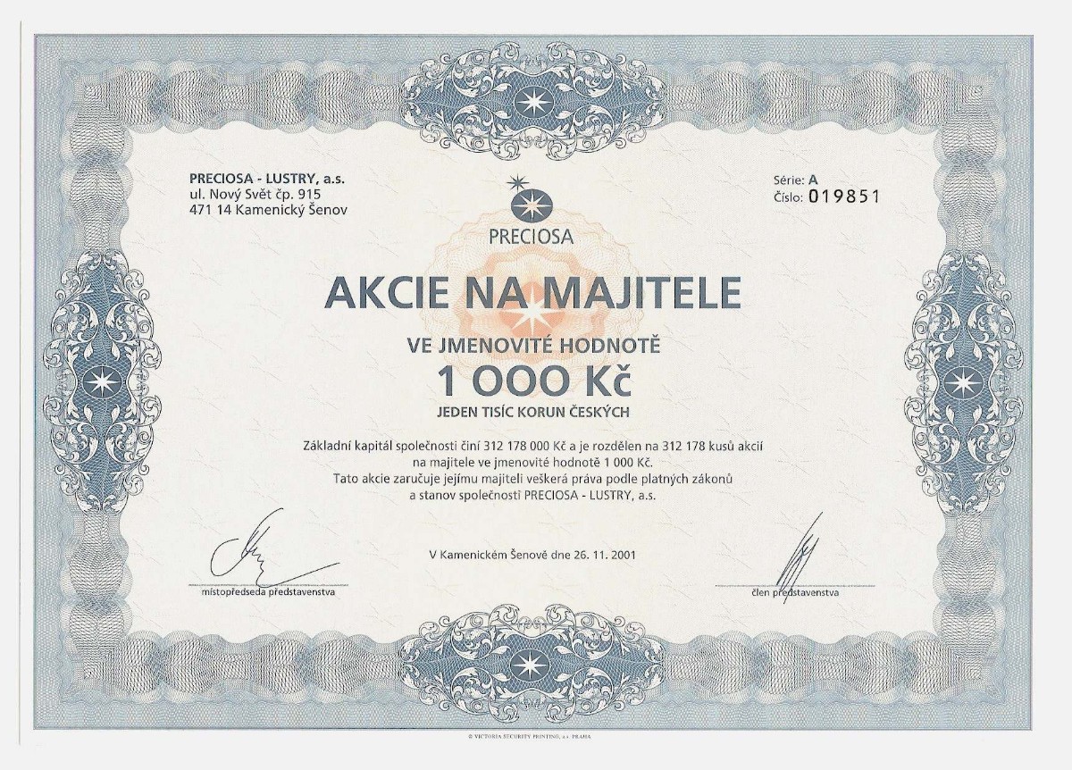 Několik ukázek ze sbírky je vyobrazeno za článkem. Na prvních dvou jsou akcie, které existovaly i za socialismu (Centrotex a Československá obchodní banka). Další už jsou akcie vydané po roce 1990. Naše generace určitě zavzpomíná na banky (Agrobanka, Banka Bohemia, Pragobanka, Moravia banka, Ekoagrobanka, COOP banka, Interbanka) a pojišťovny (Hasičská vzájemná pojišťovna) nebo na textilní a bavlnářské společnosti (Jitex, Juta, Krajka, Stuha, Triola, Vlnap, Perla). Akciemi lze však dokumentovat též lihovary a pivovary (Starorežná, Rudolf Jelínek, Stock Plzeň, Pivovar Svijany, Pivovar Rohozec, Primátor, Starobrno, Pardubický pivovar) i minerálku Mattoni (Karlovarské minerální vody), lázeňská zřízení (Balnea, Lázně Teplice v Čechách, Lázně Františkovy lázně), hotely (karlovarské Bristol, Otava-Patria či Grandhotel Pupp, pražské Hotel Jalta či Interhotel Olympik), cestovní kanceláře (Čedok), české sklo a porcelán (Sklárny Kavalier, Sklo Bohemia, Preciosa Lustry, Bižuterie, Český porcelán, Karlovarský porcelán), ale též sportovní kluby (fotbalové AC Sparta Praha či SK Slavia Praha, FC Baník Ostrava). Ukázky ještě doplňuji několika nejznámějšími českými značkami – Avia, Škoda, Sellier & Bellot, Spofa, Léčiva, Omnipol, Třinecké železárny, Xaverov, Botas, ČZ Strakonice, Dermacol, Jemča (čaje), Vulkan (preservativy). A na závěr dvě zajímavosti – akcie Casino a stále platná akcie Harvardský průmyslový holding s připomínkou Viktora Koženého a jeho „desetinásobku“.