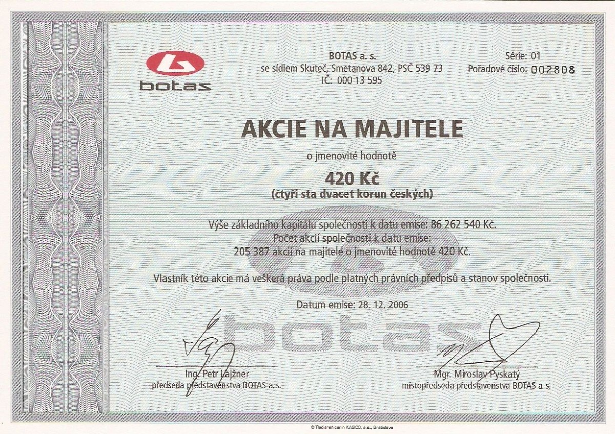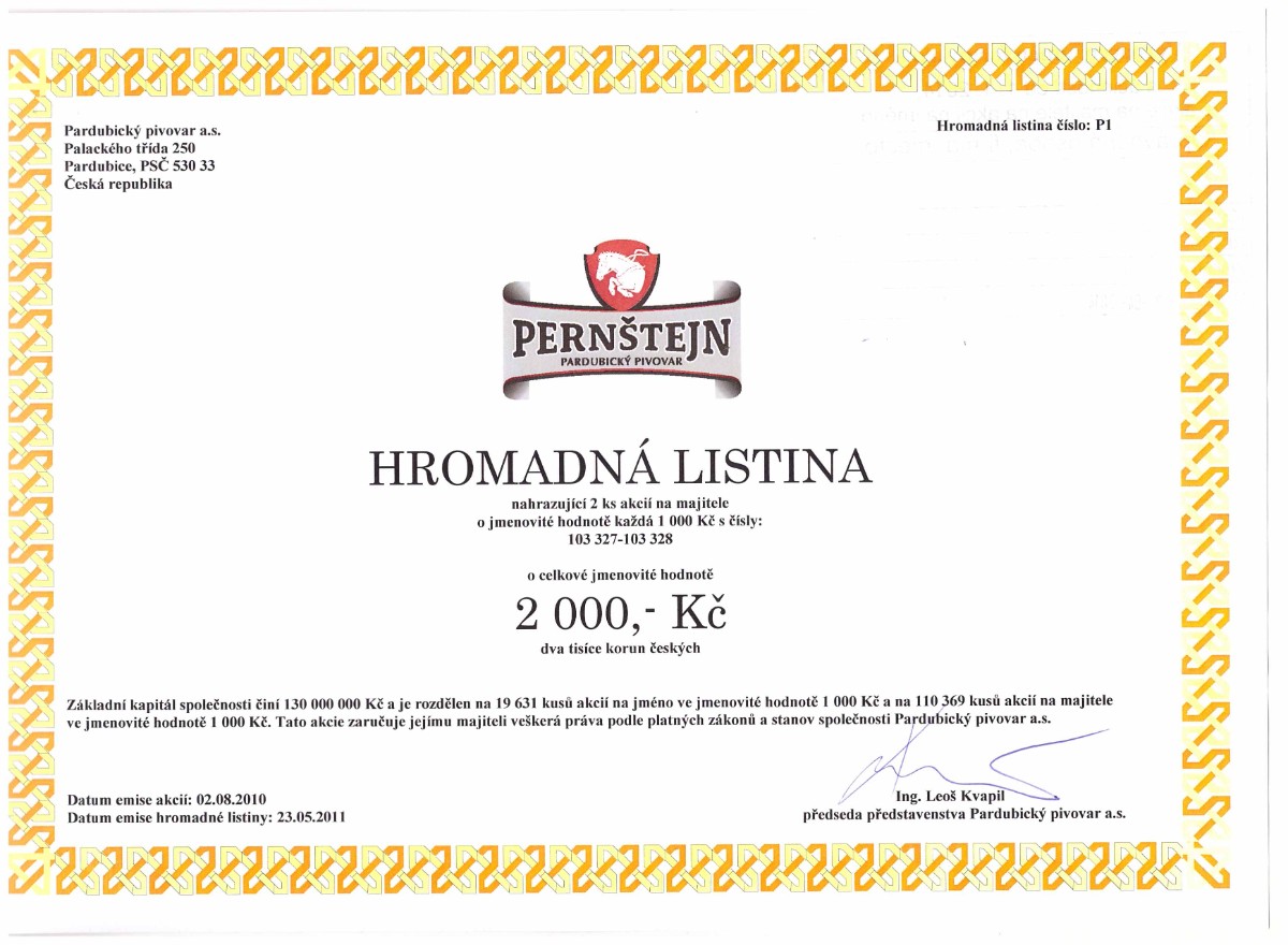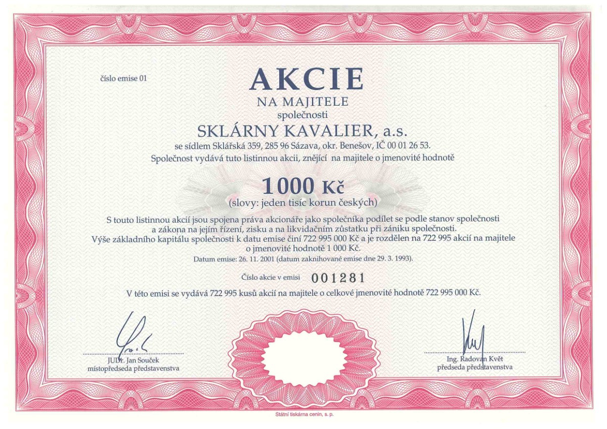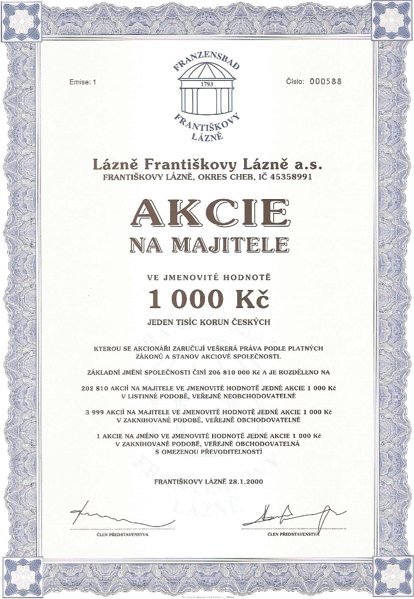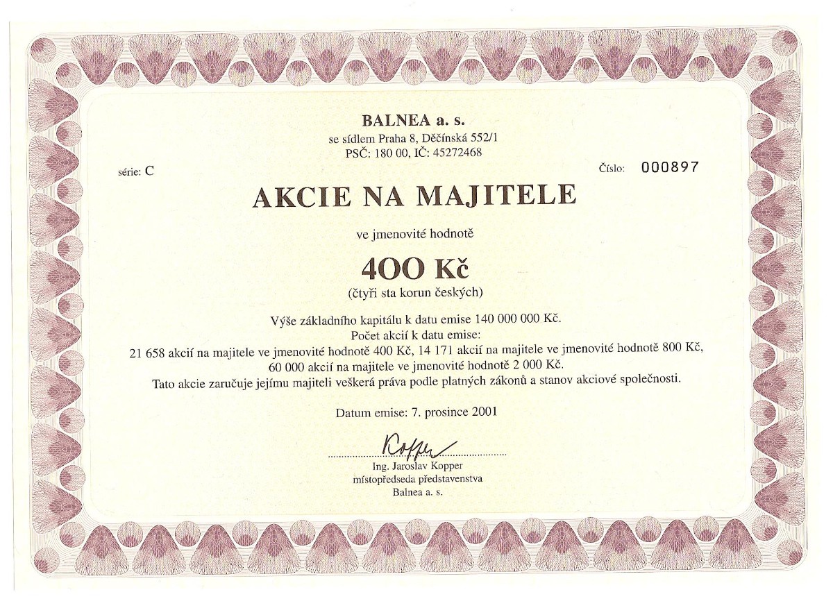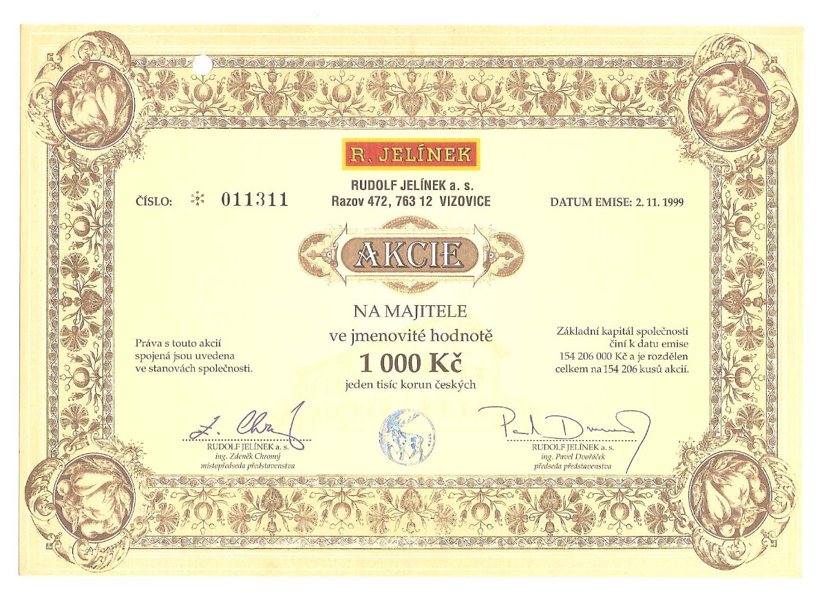 Ze sbírky jsem měl snahu vybrat listinné akcie pěkně graficky zpracované. Sami můžete posoudit, zda se můj záměr zdařil. Bohužel na ukázky listinných dluhopisů se nedostalo, ale bude-li to čtenáře zajímat, mohu jimi na tento článek navázat.