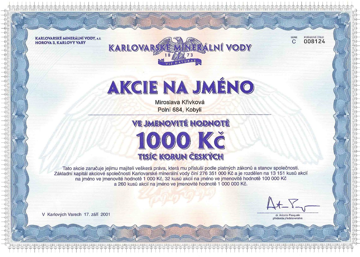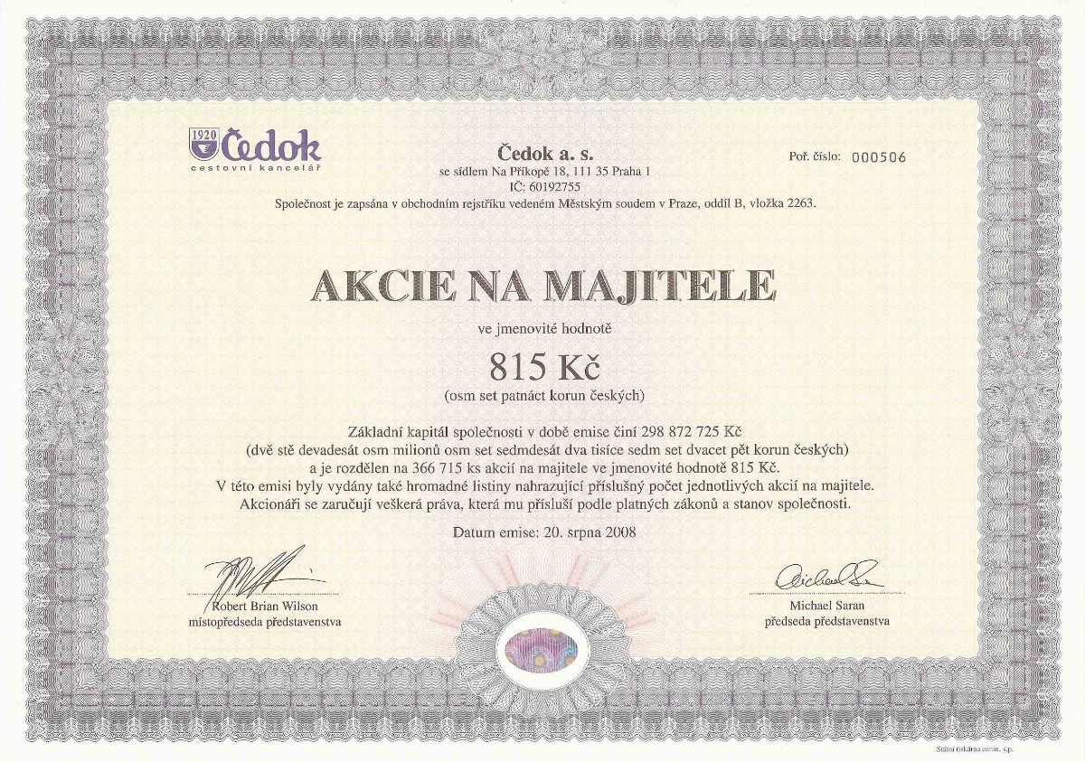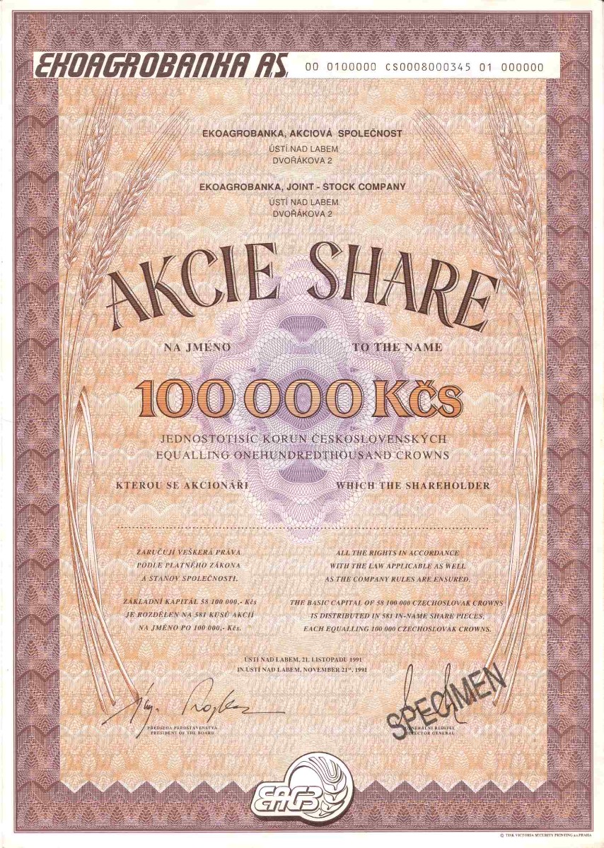 A jak už to tak bývá, podobně jako se sbírají poštovní známky, odznaky nálepky atd., začali se o neplatné listinné cenné papíry, případně jejich specimeny (vzory), které se tiskly pro kontrolu před vlastním tiskem celého vydání cenného papíru, zajímat také sběratelé. Zatím jich u nás moc není, ale já se mezi tyto sběratele zařadil.