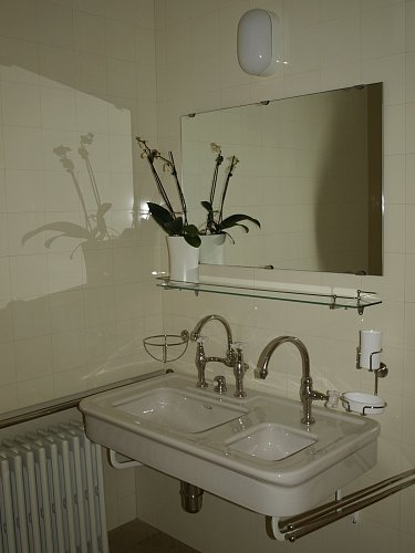 Z předsíňky mezi pokoji obou manželů je přístupná koupelna s WC. Paní průvodkyně nám s potutelným úsměvem zdůraznila, že na hygienu se v této rodině enormně dbalo. Osobně si myslím, že by si toto doporučení měli vzít k srdci i někteří naši spoluobčané v 21. století ....