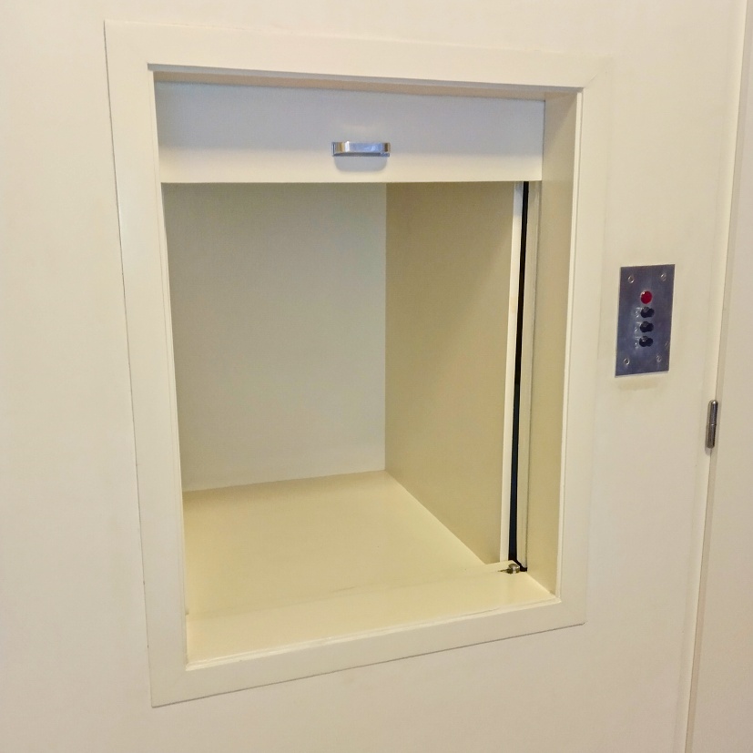 Celá přední strana pokoje je prosklená sedmi velkými tabulemi velmi průzračného skla o rozměrech 5 × 3,5 metru a síle 9,8 mm. Dvě z těchto tabulí se dají pomocí stále funkčního systému elektromotorů spouštět až k podlaze a otevřít tak pokoj do zahrady. Ochranu proti slunci zajišťují plátěné markýzy, zajištěno je i zamezení rosení skel. Tlačítka na ovládání posuvu oken jsou umístěna u dveří.