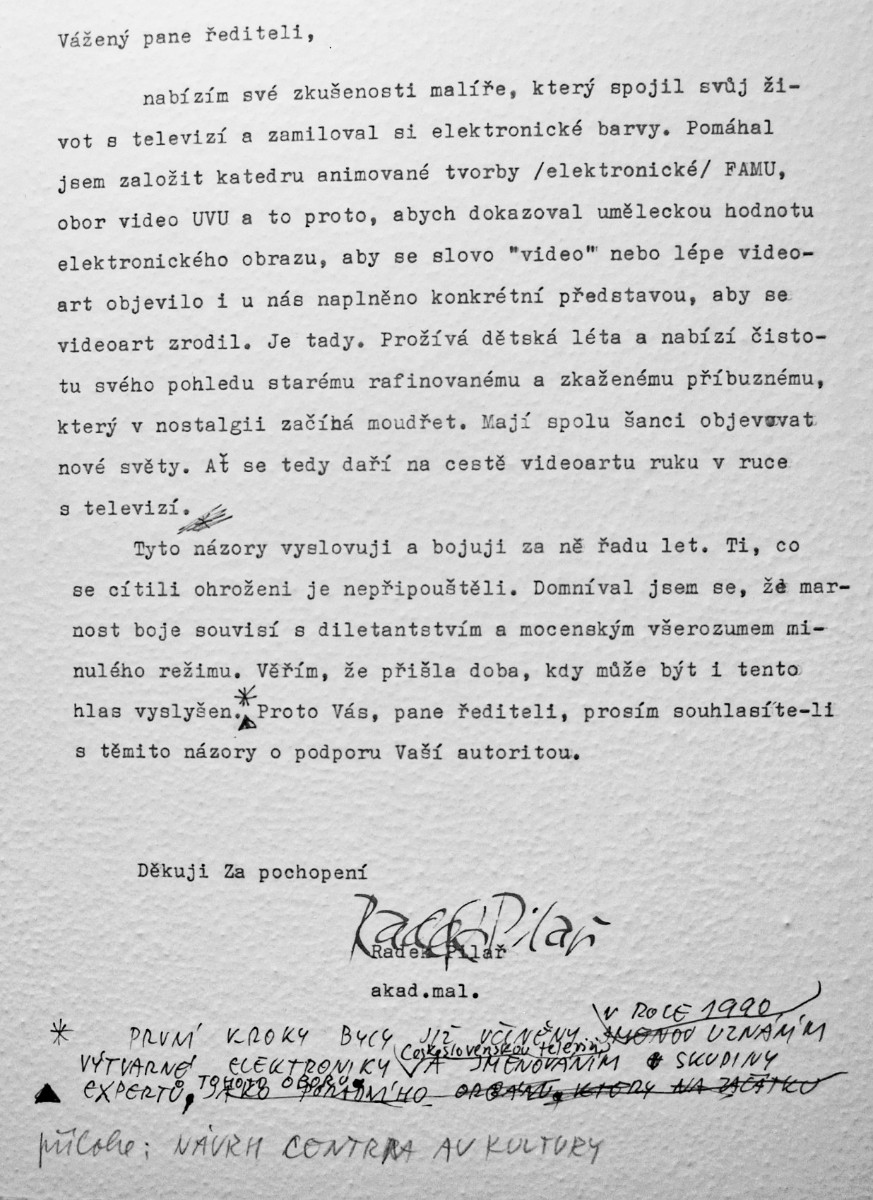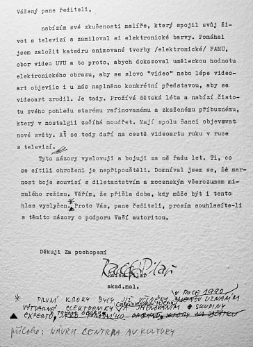 Vlevo dopis malíře Radka Pilaře vedení televize, vpravo partitura k večerníčkům.