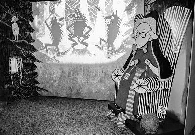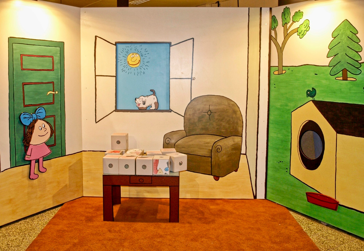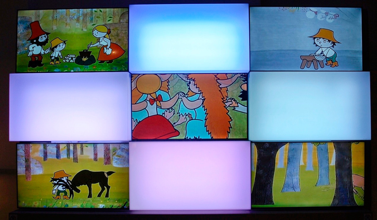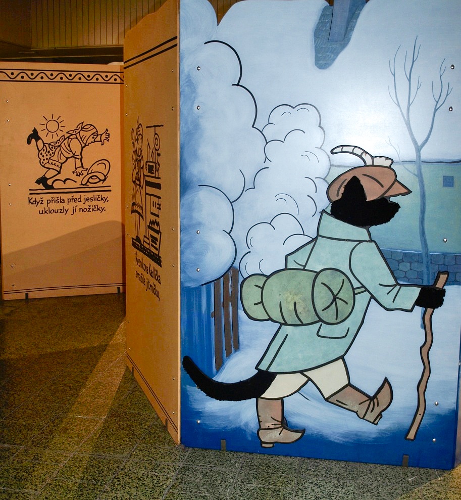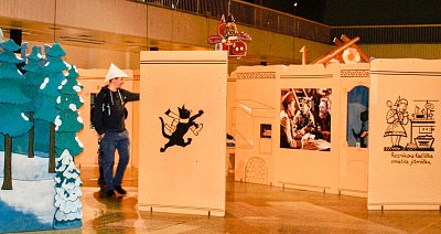 Přesně tak to vypadá v pavilonu H. Procházka vede mezi ručně malovanými kulisami, vitrínami v podobě televizních obrazovek či panely s připomínkou nejvýznamnějších večerníčkových tvůrců, představitelů, dabérů ....