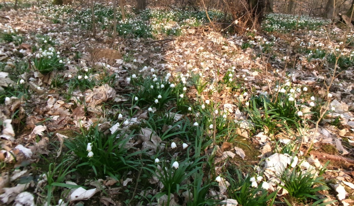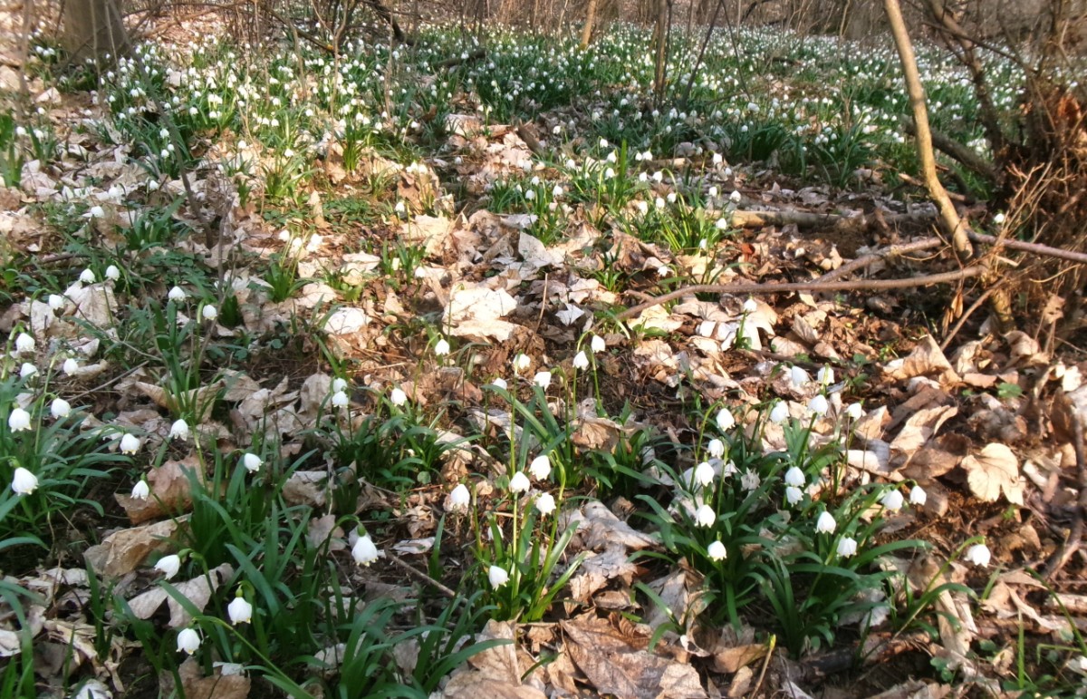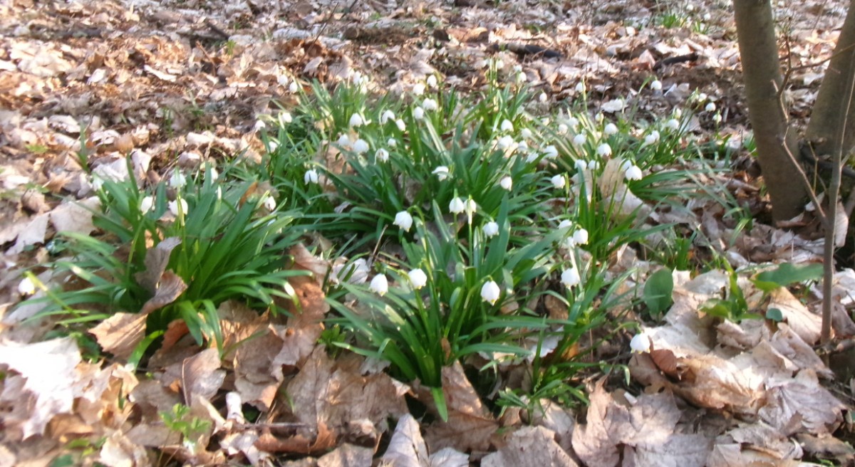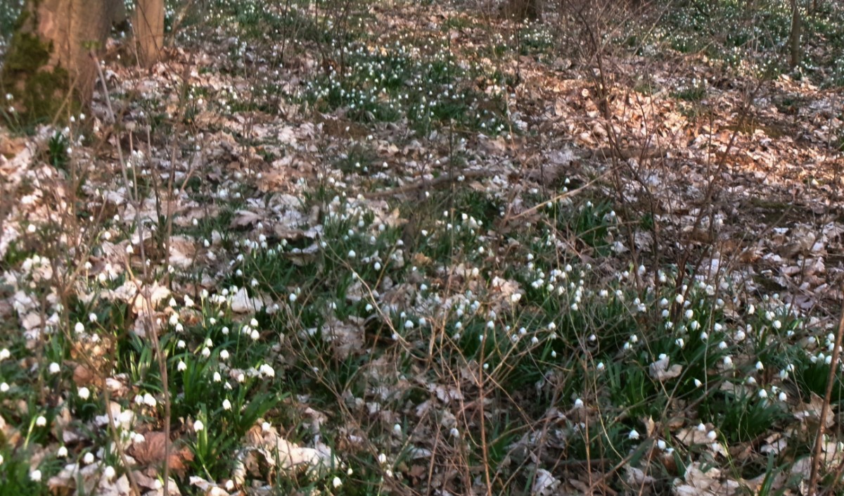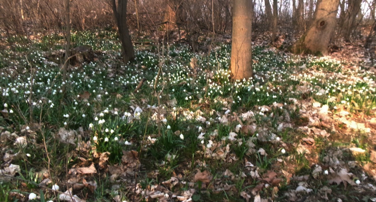 Ani u těchto rybníků jsme nebyli sami, krásné počasí využilo více lidí. Šli jsme se podívat k místnímu parku a zastavila nás bílá nádhera  kolem. Všude byly trsy bledulí, zažili jsme to tu už víckrát, ale vždycky si říkám, jak můžou vykvést v takovém množství suchého listí. Neodolala jsem a jednu hromádku jsem si vzala domů. Cestou kolem rybníka jsme si popovídali s místním rybářem. Ptala jsem se ho na labutě,  začal se smát, když jsem mu říkala o těch bílých ptácích, labutě na tomto rybníku prý nebyly už dva roky.  Popřáli jsme mu šťastný lov a šli jsme k autu.